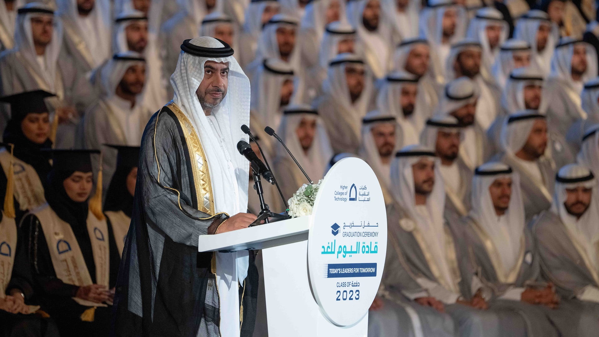 وأشار د. العيان، إلى أن الإنسان يبقى المحور والرهان للوطن لتحقيق التقدم وبناء مستقبل مستدام، وأن الفكر الأصيل والمتقدم لقيادتنا الرشيدة منذ التأسيس هو ما دفع إنسان الإمارات للانطلاق بثقة ليخوض التحديات ويحقق الإنجازات، لافتاً إلى أن كليات التقنية العليا تفخر كل عام بتخريج دفعة جديدة من أبناء وبنات الإمارات الذين يتم إعدادهم وفق رؤى وطموحات القيادة، ليكونوا قادة اليوم للغد، ويساهموا في بناء المستقبل المستدام.
