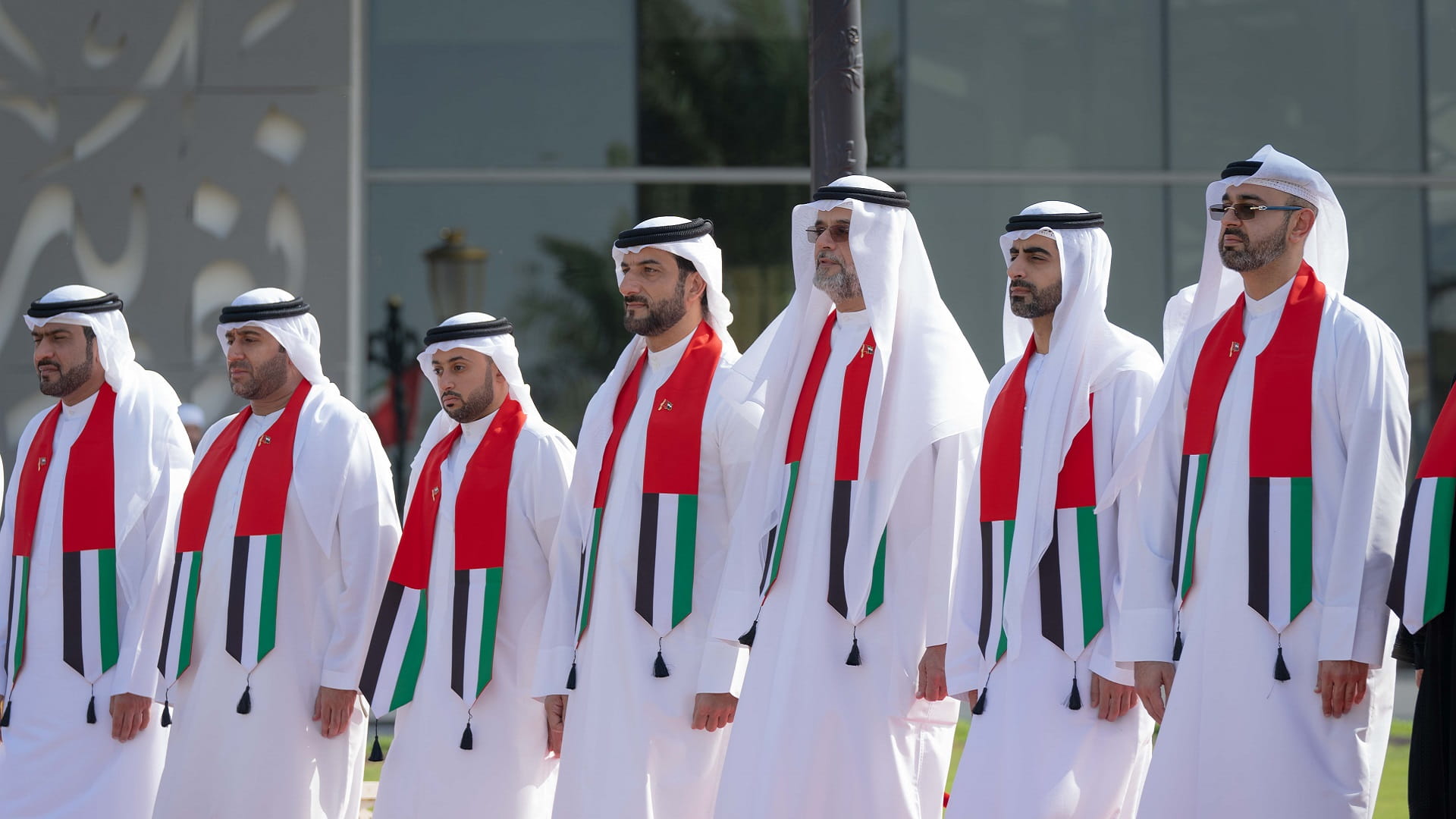 وتفضل سمو ولي عهد الشارقة وعند تمام العاشرة عشرة صباحاً، بالإيذان ببدء مراسم رفع العلم، بمشاركة ضباط وأفراد من القيادة العامة لشرطة الشارقة والفرقة الموسيقية العسكرية لأكاديمية العلوم الشرطية بالشارقة التي عزفت السلام الوطني لدولة الإمارات العربية المتحدة، حيث ارتفع علم البلاد عالياً في سماء الوطن، اعتزازاً بيوم العلم.