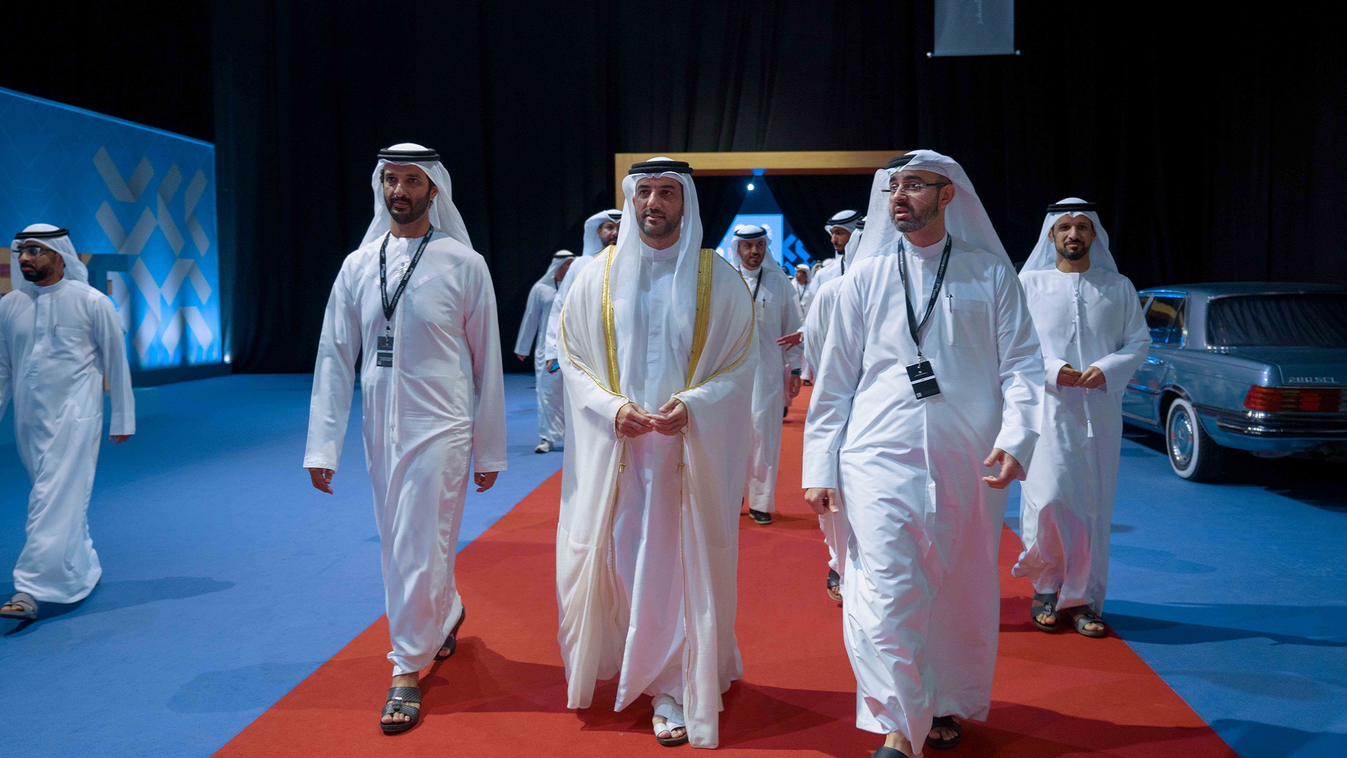 وكان في استقبال سموه عند وصوله، الشيخ سالم بن محمد بن سالم القاسمي، مدير هيئة الإنماء التجاري والسياحي بالشارقة، والشيخ فيصل بن سعود القاسمي، مدير هيئة مطار الشارقة الدولي، ومعالي عبد الله بن طوق المري، وزير الاقتصاد، وعدد من رؤساء ومدراء عموم ومدراء الدوائر المحلية بالشارقة وضيوف المنتدى.