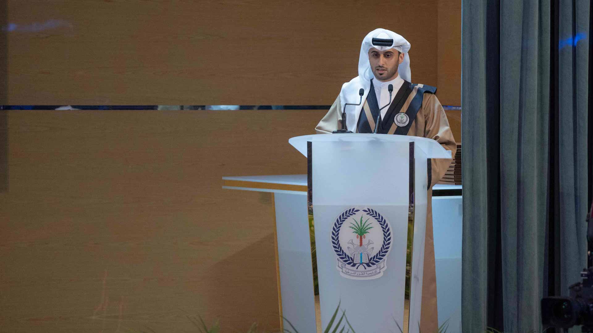 وفي ختام كلمته، قدم الخريج خليفة الحميري الشكر والتقدير إنابةً عن زملاءه من الخريجين إلى مجلس الأكاديمية والهيئات التعليمية والإدارية على ما بذلوه من جهود كبيرة، لافتاً إلى عزمهم رد الجميل للوطن والقيادة الرشيدة بالعمل والاجتهاد والبذل والعطاء.
