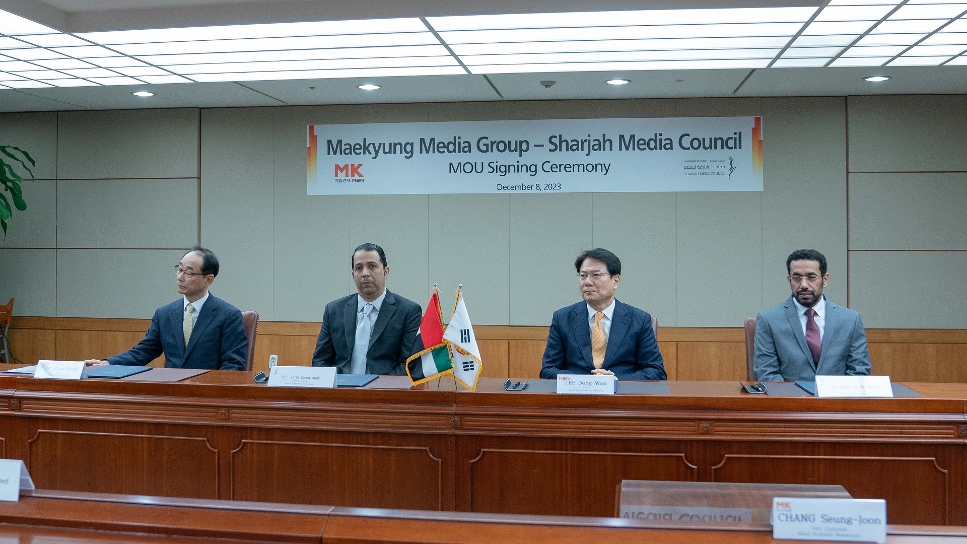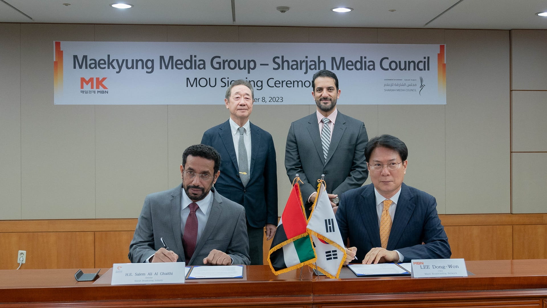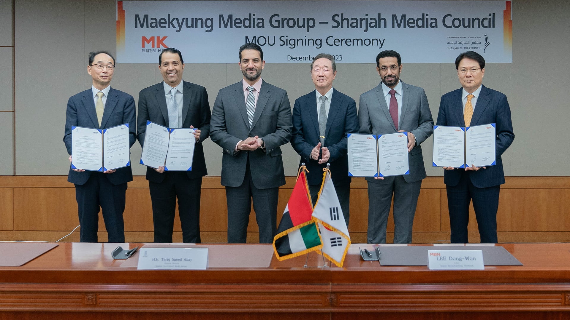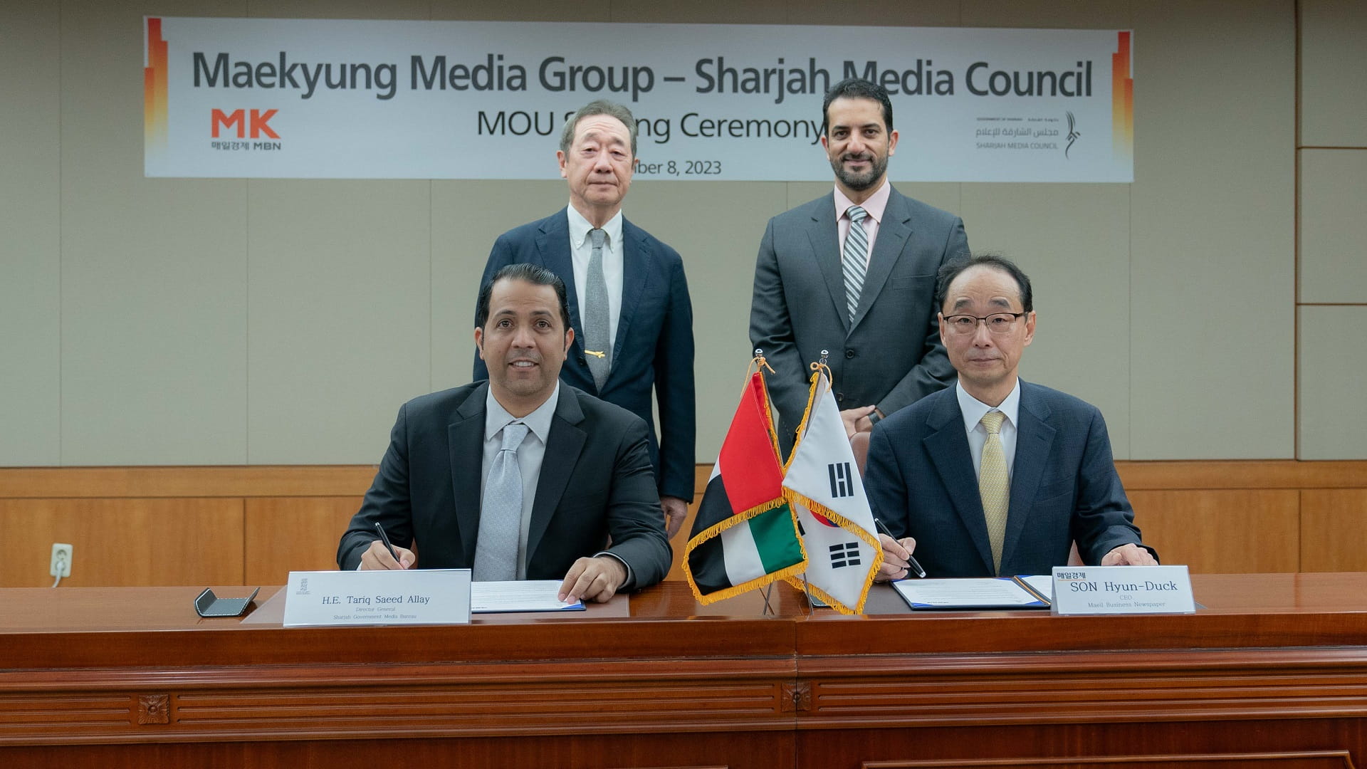 ووقع سعادة طارق سعيد علاي مدير عام المكتب الإعلامي لحكومة الشارقة مذكرة تفاهم مع هيون دوك سون، الرئيس التنفيذي لصحيفة ماييل للأعمال التابعة لمجموعة إم كيه الإعلامية.