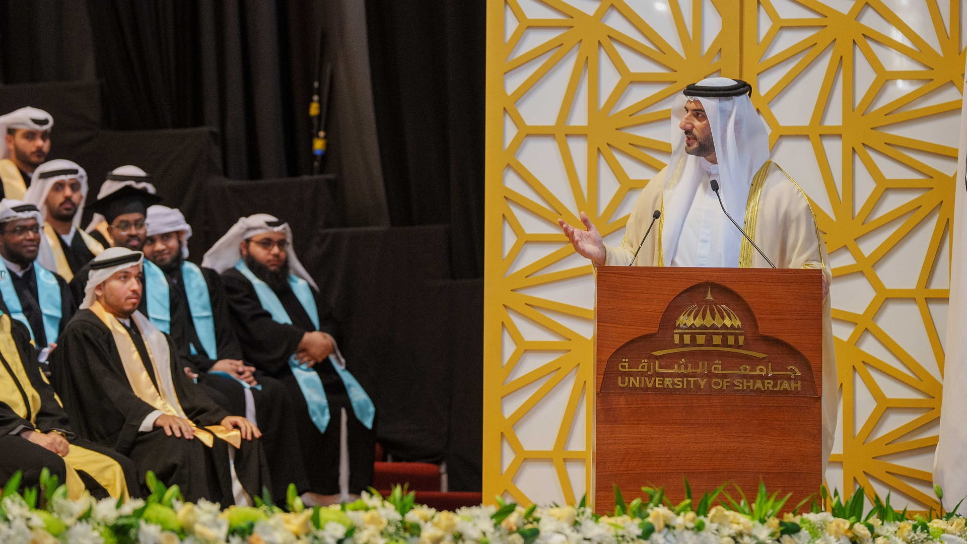 وأضاف سموه، اليوم نشهد تخريج دفعة جديدة من أبناء جامعة الشارقة، بل نقدم دليلاً جديداً على تميز ونجاح جامعتنا في مواصلة المسيرة العلمية والتعليمية حتى وصلنا إلى ما وصلنا إليه من مرتبة علمية متقدمة بين جامعات العالم، ونعدكم ونعدُ الأجيال القادمة أيضاً أننا سنواصل الجهد والعمل الدؤوب لنساهم ونشارك في صنع مستقبل واعد يليق بالشارقة.