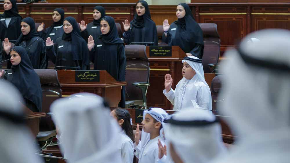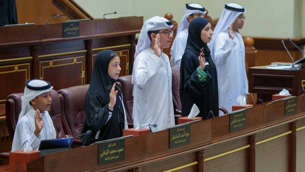 وكان الحفل قد استهل بعزف السلام الوطني، تلته تلاوة آيات بينات من القرآن الكريم، أدى بعدها أعضاء مجلس شورى أطفال الشارقة البالغ عددهم 60 عضواً، وشورى شباب الشارقة البالغ عددهم 80 عضواً، القَسم الخاص بعمل مجالس الشورى.