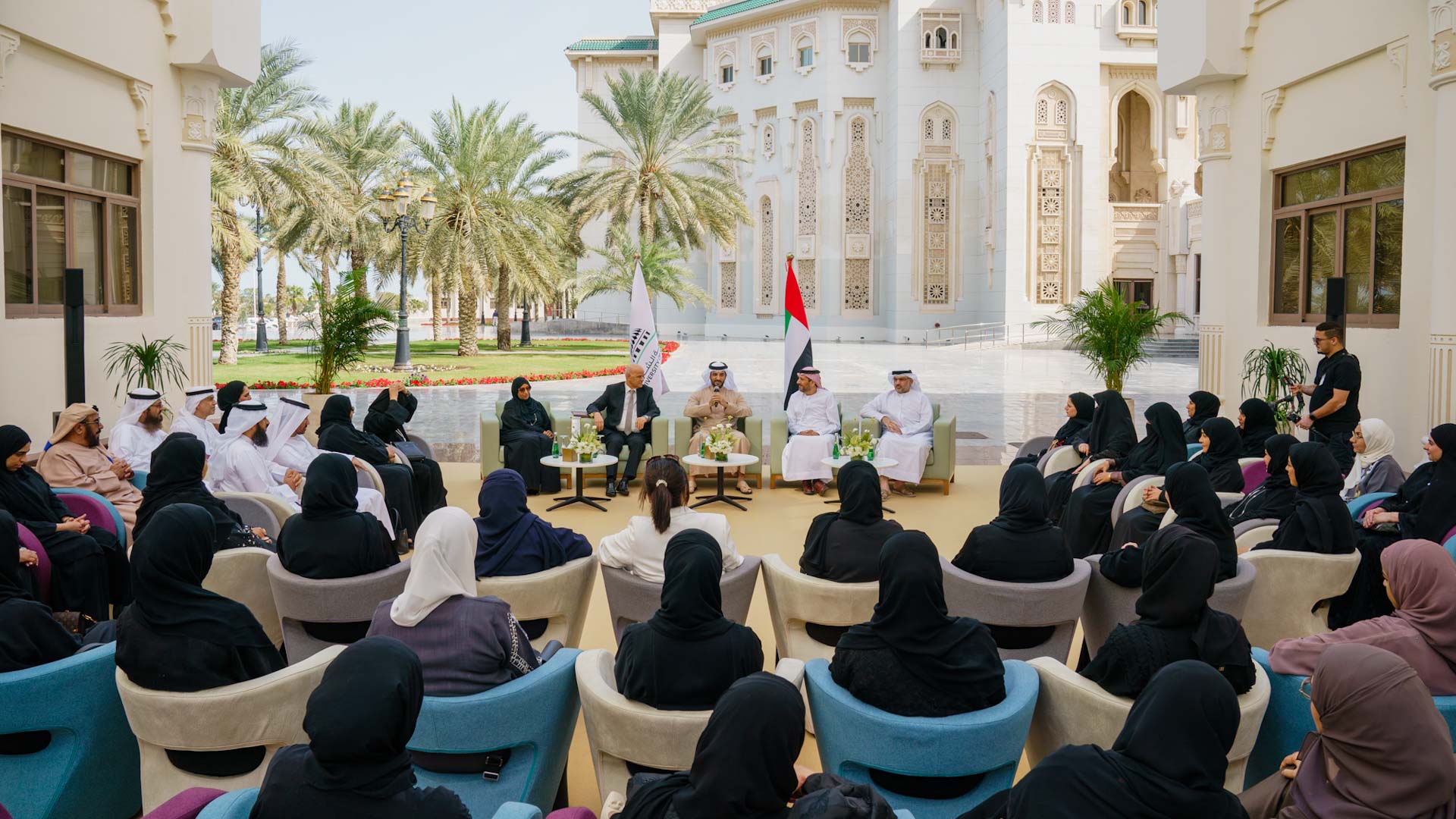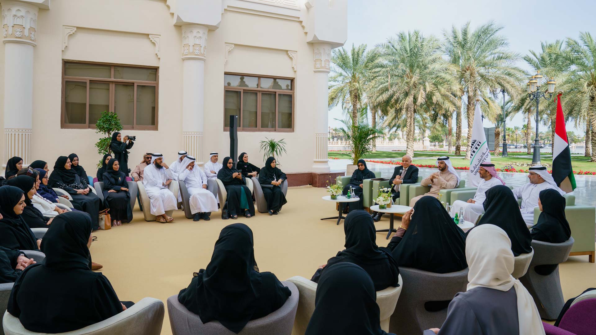 وألقى الدكتور حميد مجول النعيمي مدير جامعة الشارقة كلمة أشار خلالها إلى جهود صاحب السمو الشيخ الدكتور سلطان بن محمد القاسمي، عضو المجلس الأعلى حاكم الشارقة، في تأسيس الجامعة والتركيز على أن تكون من ضمن نخبة الجامعات على مستوى العالم، كما ثمن دعم واهتمام ومتابعة سمو رئيس الجامعة الحثيثة من أجل تعزيز مكانة الجامعة وتحقيق هدف رفع نسبة التوطين في الهيئة التدريسية بجامعة الشارقة، والذي يبلغ عددهم الآن 65 أستاذاً وأستاذة.