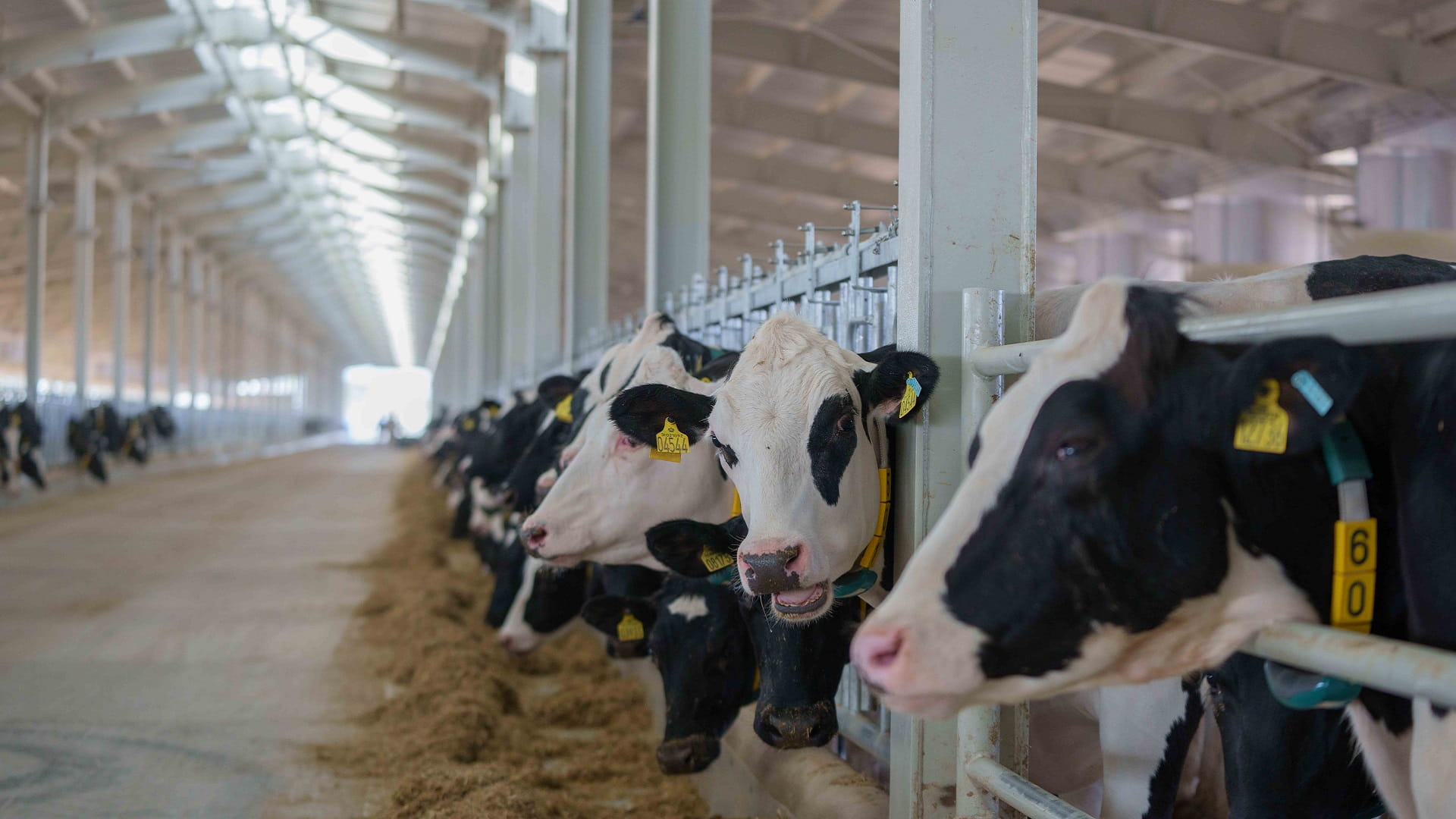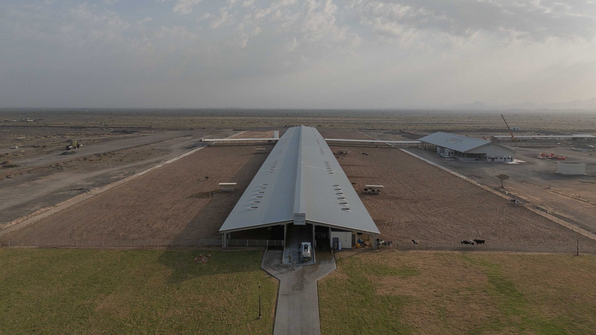 واطلع سموّه، خلال الجولة، على حظائر المزرعة، المُصممة بهيكل معدني لتلائم التغيّر المناخي، وتحتوي الحظائر في المرحلة الأولى على 1200 بقرة عشار تحمل إناثاً؛ حيث تعمل المزرعة على تأسيس قطيع النواة الذي يتألف من 5000 بقرة تحمل جينات A2A2 الطبيعية وغير المعدلة جينياً، على مدى السنوات الخمس المقبلة، مع اكتمال الحظائر التي سيبلغ عددها 63 حظيرة. كما اطلع سموه على أحدث التقنيات المستخدمة في مراقبة الأبقار من خلال القلادات المركبة على رقبة كل بقرة؛ لمعرفة حركة وصحة الأبقار، والكشف عن موعد تلقيحها، إضافة إلى استخدام نظام التغذية الآلي والأرضيات المطاطية؛ للمحافظة على سلامة الأبقار خلال فترة التغذية، ونظام الأقفال الذي يُسهم في تسهيل تناول العليقة العلفية، ويساعد في تثبيتها خلال إجراء الفحوص الدورية، وطرق التنظيف الآلية عن طريق تدفق المياه التي تتم معالجتها بطرق آمنة في وحدة تنقية معالجة المياه في المزرعة، إلى جانب نظام التبريد، والمراوح الجافة لطرد الحشرات.