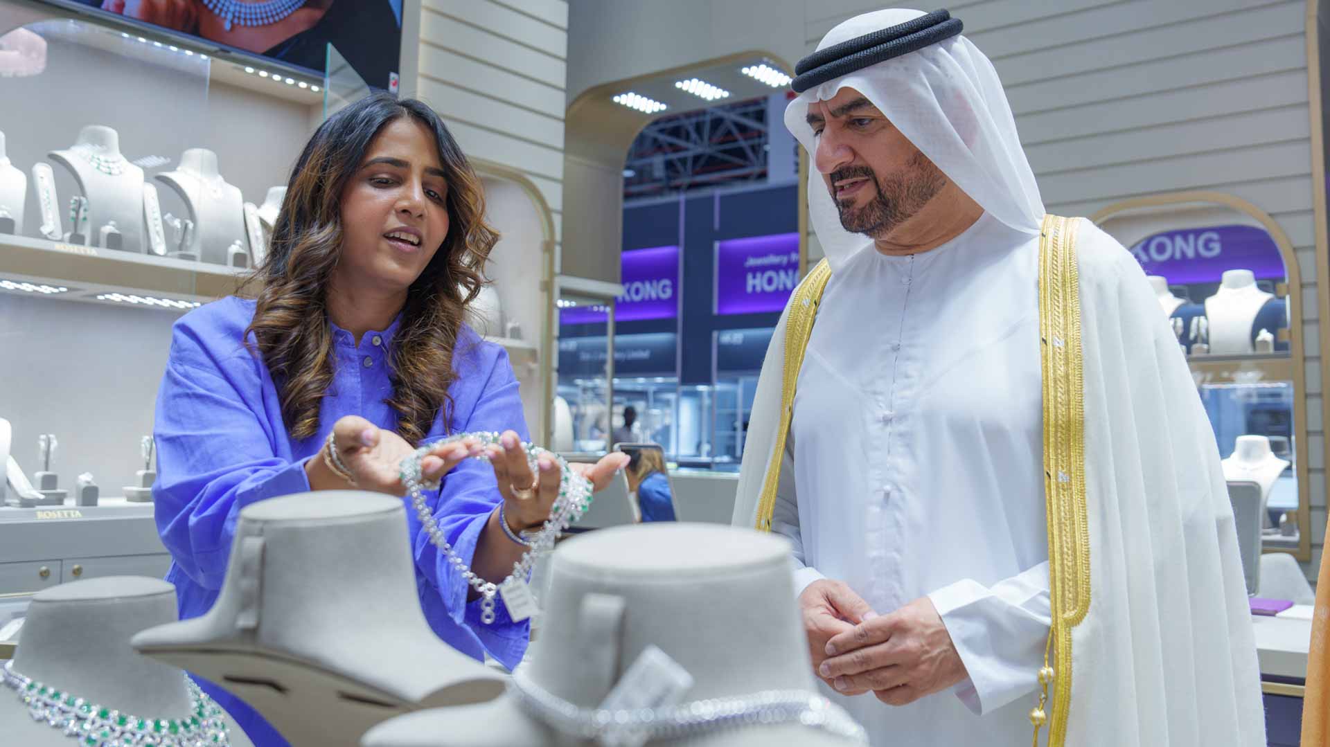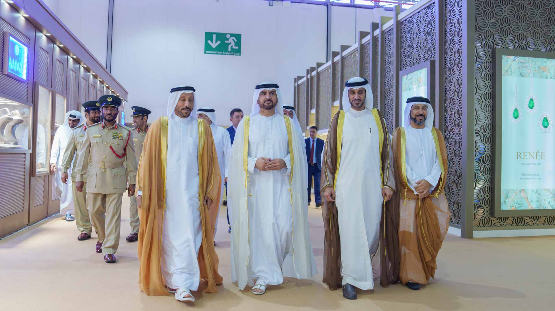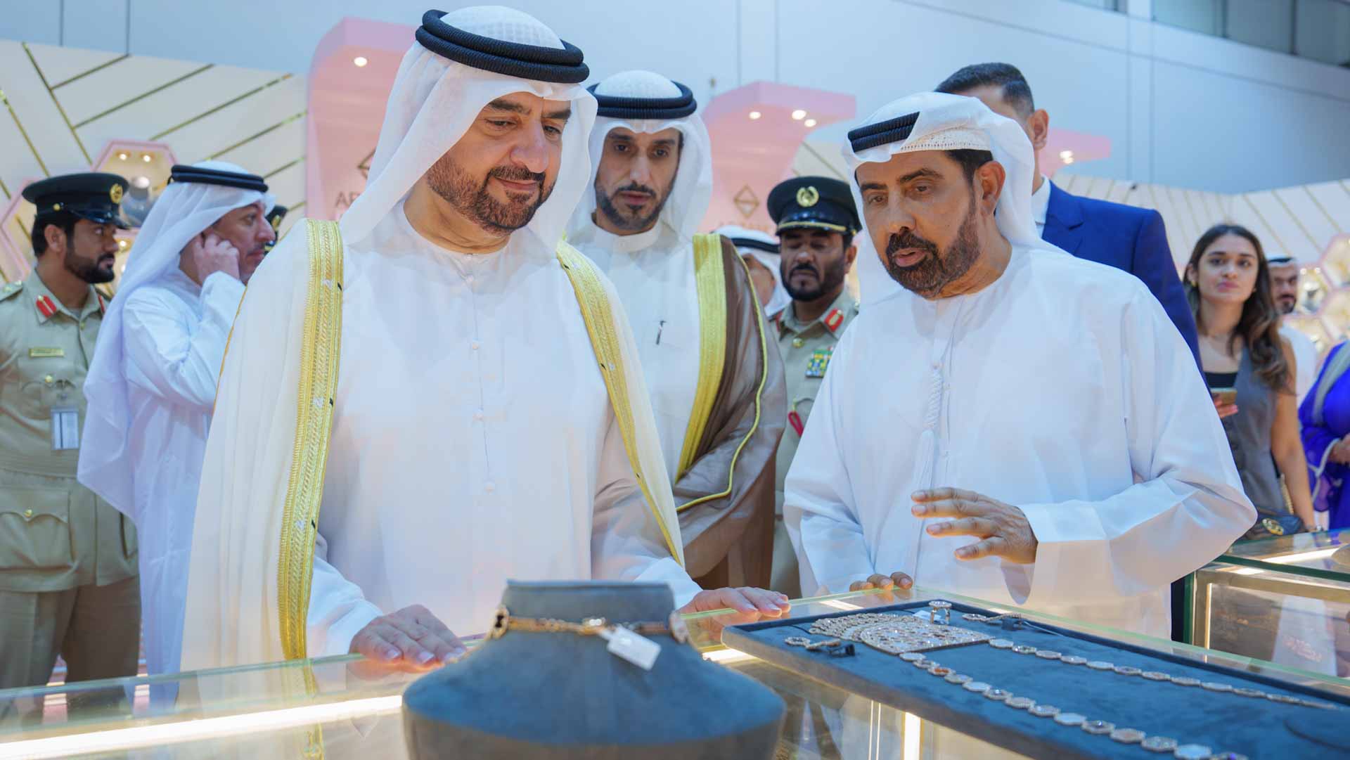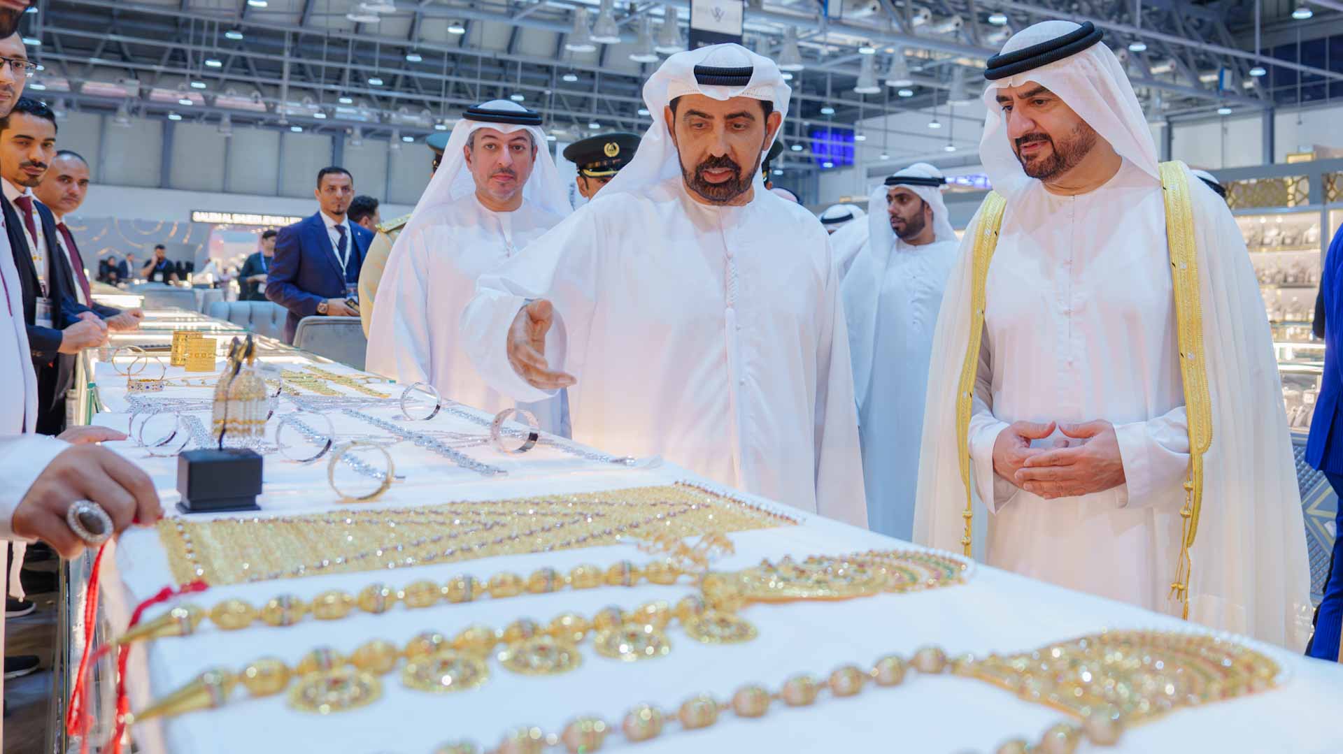 وتوقّف سمو نائب حاكم الشارقة لدى عدد من منصات العرض المحلية والعالمية، ومنصة صاغة الإماراتيين التي تعرض إبداعات نخبة من المُصمّمات الإماراتيات في مجال الذهب والمشغولات التي تستلهم التراث الإماراتي برؤية حديثة، وتقدّم إبداعات وتصميمات مميزة تعكس أحدث الابتكارات في عالم المجوهرات. ويُقدم المعرض، الذي يمتد على مساحة إجمالية تبلغ 30 ألف متر مربع، تشكيلات متنوعة من أحدث الإبداعات في عالم المجوهرات والساعات التي يقدمها عدد من كبار المصممين العالميين من كبرى دور المجوهرات، إلى جانب قطع نادرة وثمينة من ابتكار أبرز الشركات المشاركة، وتشمل المعروضات مجموعة واسعة من تصاميم المجوهرات والألماس، والذهب عيار 21، والبلاتين، والفضة، والأحجار الكريمة الملونة، واللؤلؤ، والألماس، والمعادن الثمينة، إلى جانب الساعات، والمعدات الخاصة بتغليف المجوهرات.