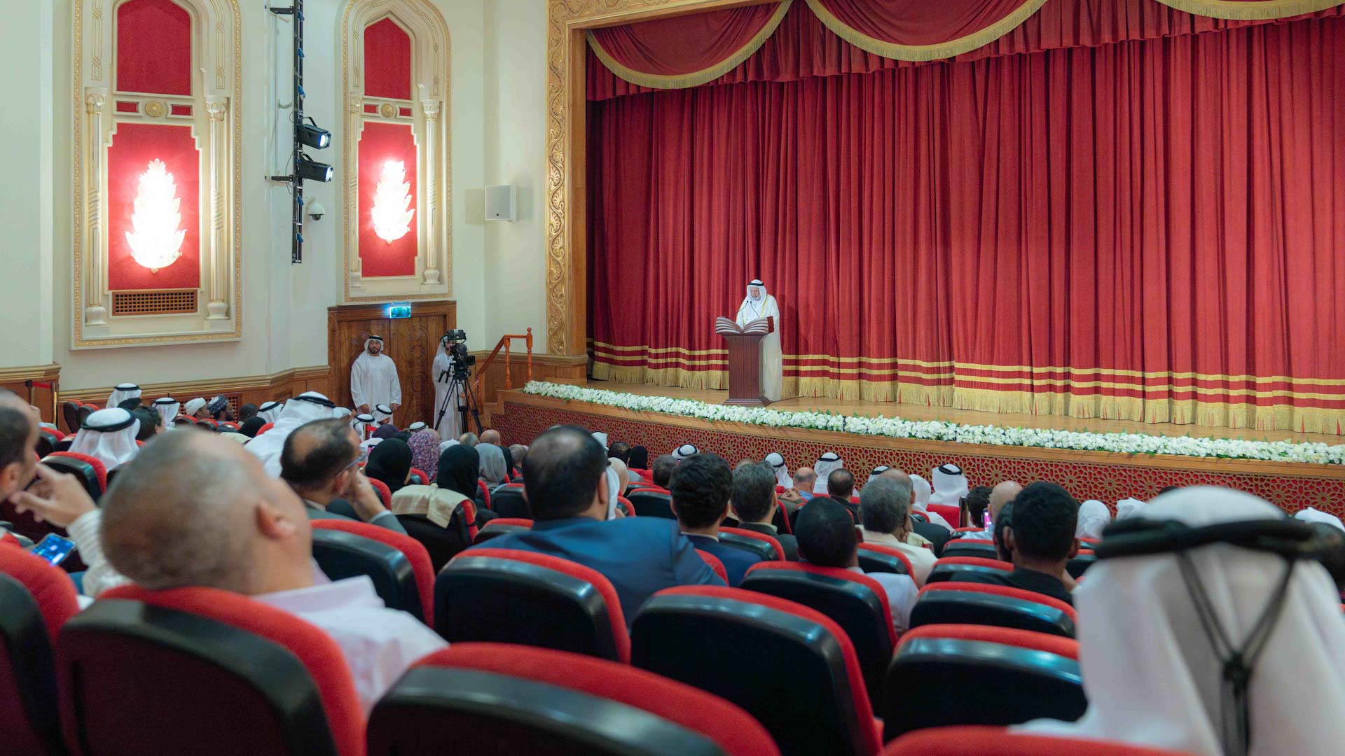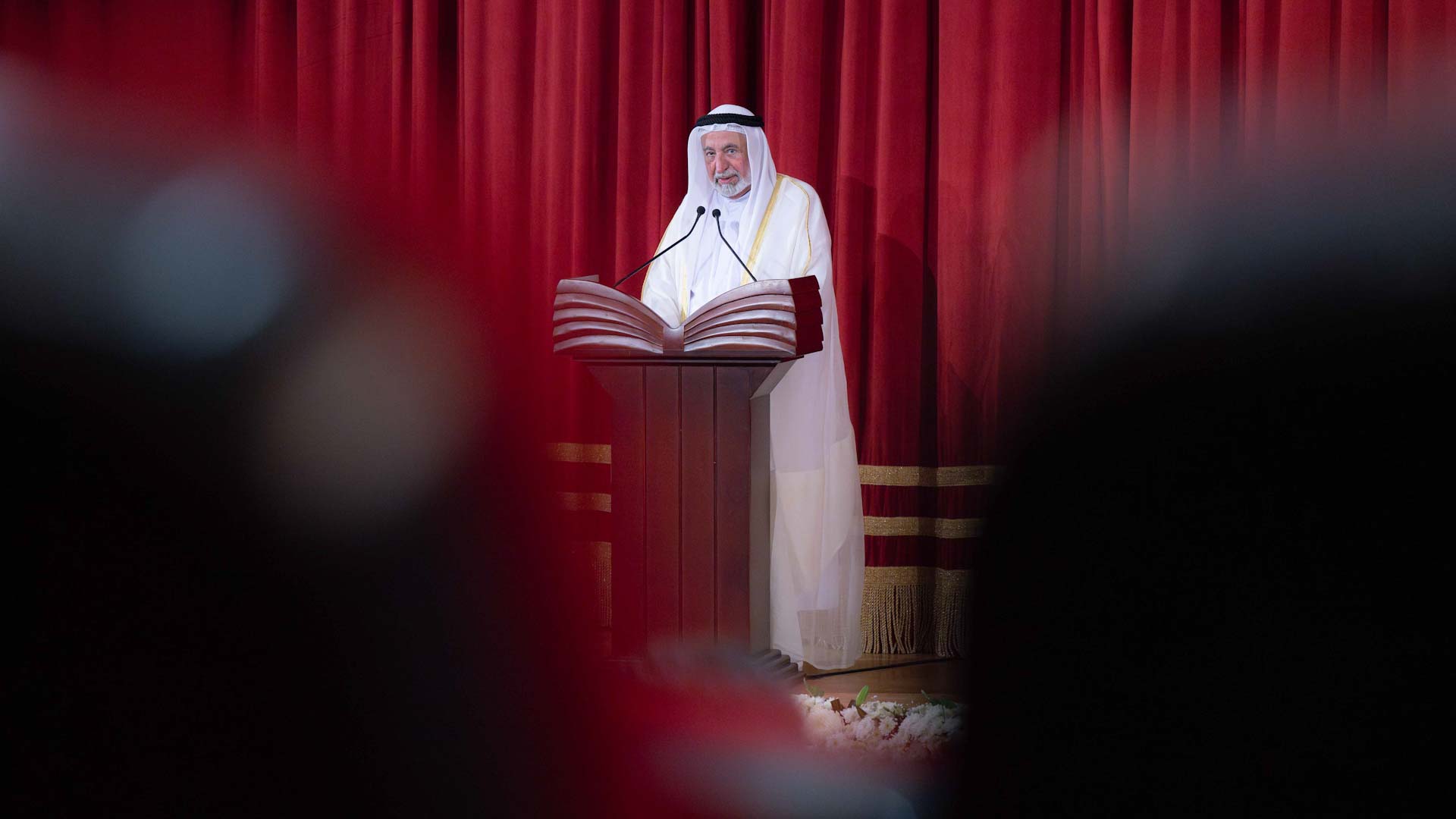 ولفت صاحب السمو حاكم الشارقة خلال كلمته إلى أهمية الشعر في حياة المجتمعات والإسهام في الكثير من المجالات كونه إعلاماً يُعبّر عن المجتمع، قائلاً سموه: "الشعر، الذي نحن نظّن أنه محصور على الغزل أو المدح أو غيره من أغراض الشعر اليوم، مفروضٌ أن يحوي الدنيا كلها، وأن يكون وزارة إعلام، ويغطي كل مناحي الحياة وليس محصوراً في هفواتٍ أو زلات ومكاسب، دعونا من هذه اللحظة أن نعطي هذا الاسم (الشعر) مكانته، ونقول إن الشعر سيكون وسيلة للرسائل إن كانت في الحماسة أو غيرها، إي هو إعلام، ولذلك يا أهل الشعر افتخروا بأنفسكم".