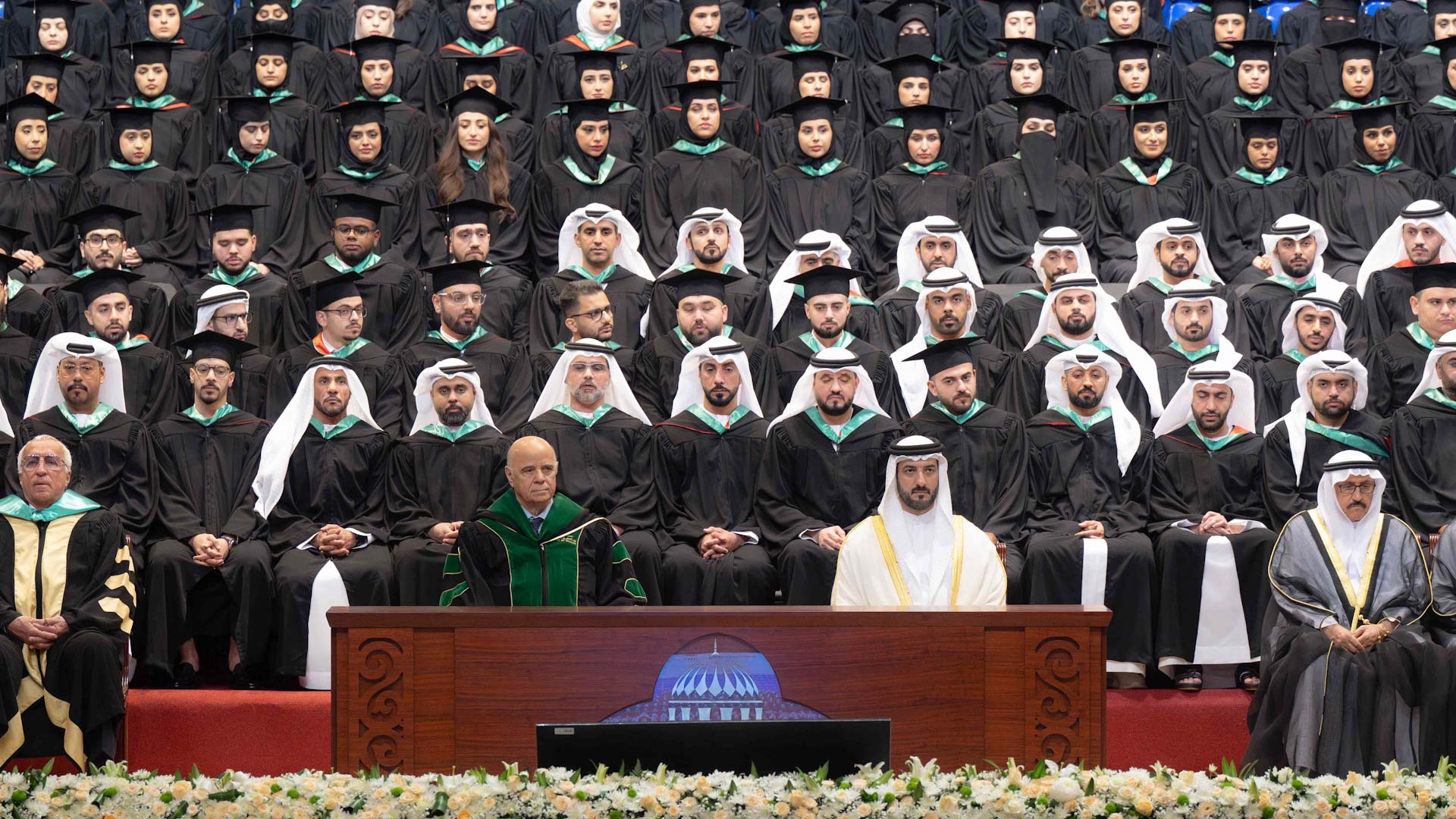 واختتم مدير جامعة الشارقة كلمته موصياً خريجي وخريجات الدراسات العليا بأن يكونوا خير سفراء للجامعة، مسخرين ما نهلوه من علمٍ ومعرفةٍ ومهاراتٍ لخدمة المجتمع، ومتميزين بالإبداع والابتكار في تخصصاتهم، ومتبعين المنهج العلمي السليم في كل خطوةٍ يخطونها.