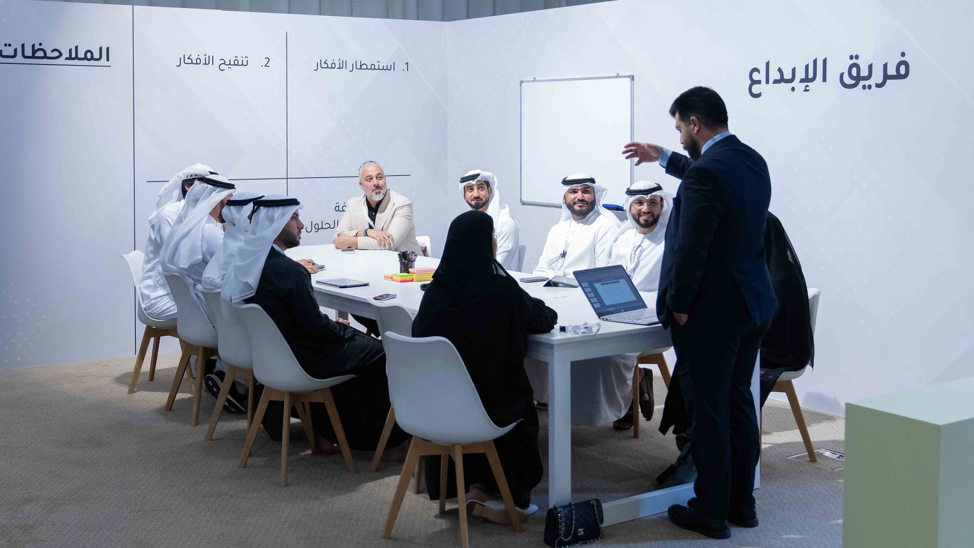 كما تابع سموه خلال الحفل الورش المصاحبة ونشاط العصف الذهني لفرق العمل التي تم تشكيلها بهدف وضع الحلول والمقترحات للتحديات الأربعة لمستقبل الإعلام، التي طرحها سموه خلال كلمته في الحفل، وبعد انتهاء الفرق من النشاط قدم كل فريق شرحاً حول نتائج المبادرات، والمشاريع المقترحة للتحديات المطروحة.