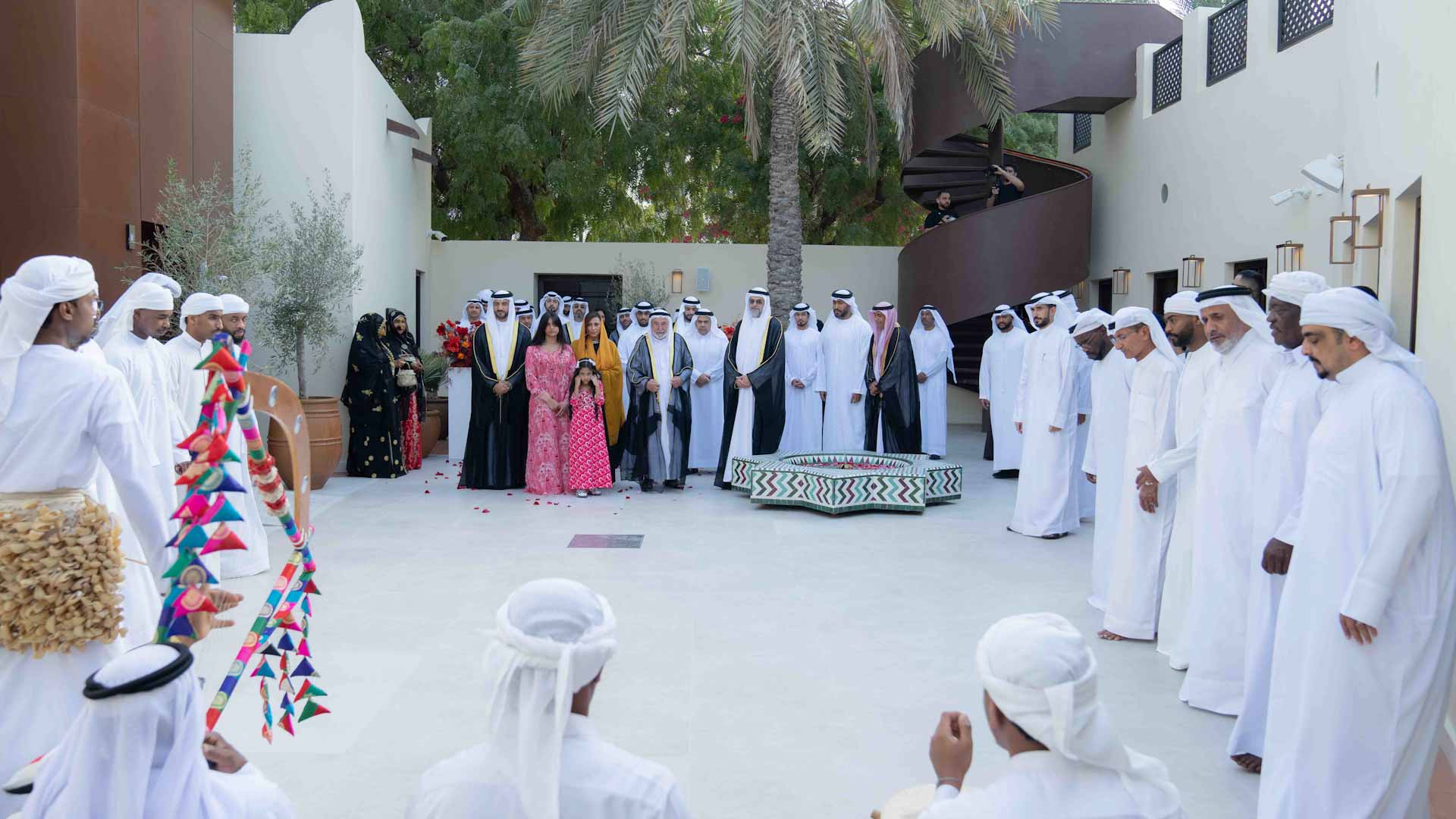 وكان في استقبال سموه لدى وصوله إلى بيت اللّوال سمو الشيخ سلطان بن محمد بن سلطان القاسمي، ولي العهد نائب حاكم الشارقة، وسمو الشيخ سلطان بن أحمد بن سلطان القاسمي، نائب حاكم الشارقة، والشيخة بدور بنت سلطان القاسمي، مؤسسة بيت اللّوال، والشيخة حور بنت سلطان القاسمي، رئيسة مؤسسة الشارقة للفنون، والشيخ سالم بن عبد الرحمن القاسمي، رئيس مكتب سمو الحاكم، والشيخ فاهم بن سلطان القاسمي، رئيس دائرة العلاقات الحكومية، والشيخ ماجد بن سلطان القاسمي، رئيس دائرة شؤون الضواحي، والشيخة نوار بنت أحمد القاسمي، مدير مؤسسة الشارقة للفنون، وعدد من الشيوخ وكبار المسؤولين.