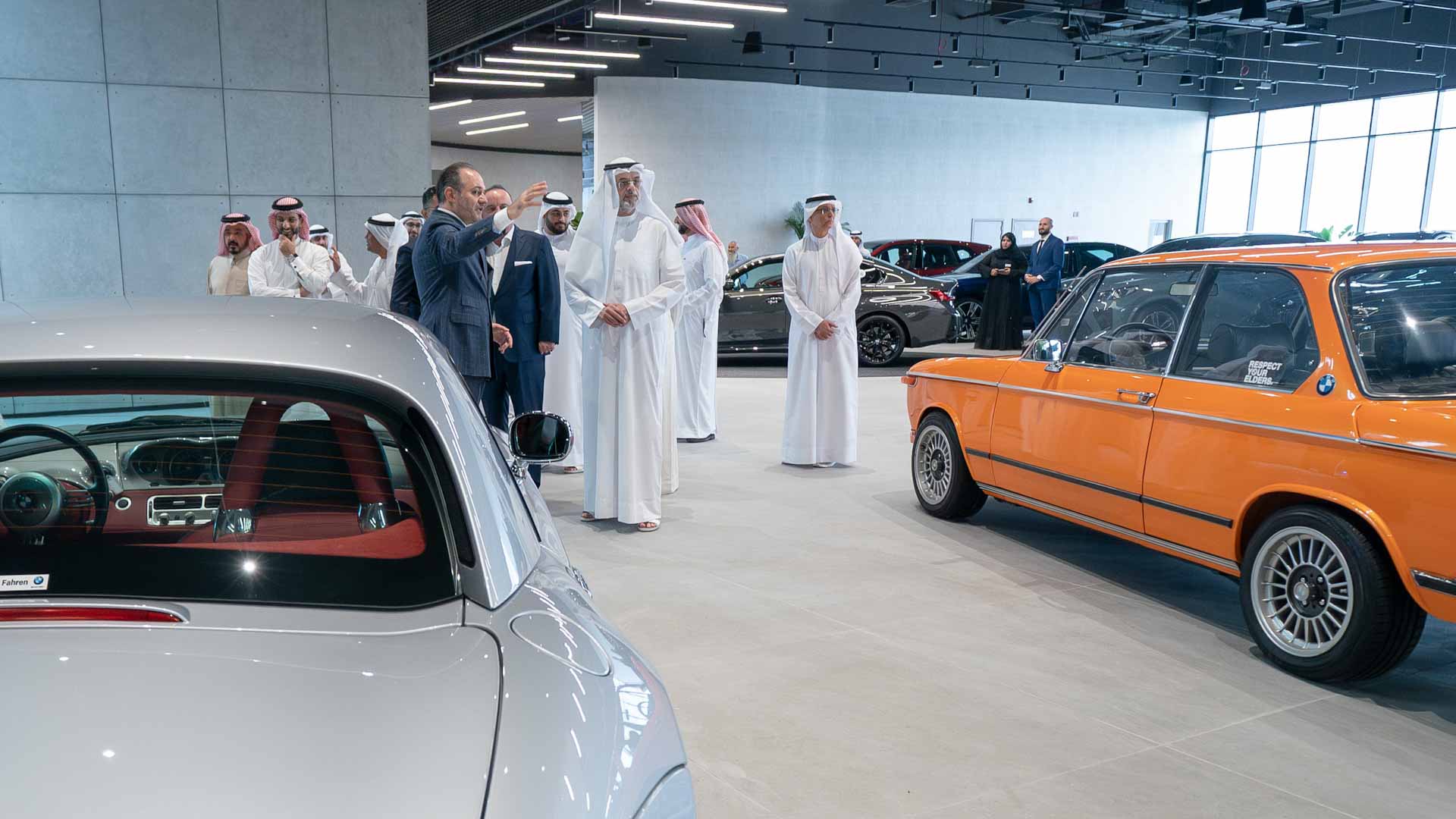 وتفضل سموه فور وصوله بقص الشريط التقليدي وإزاحة الستار عن اللوحة الجدارية إيذاناً بالافتتاح الرسمي للمركز، ليتجول سموه بعدها في المعرض حيث اطلع على أحدث إصدارات السيارات التي يوفرها المركز، إلى جانب أبرز الخدمات التي يقدمها للجمهور.