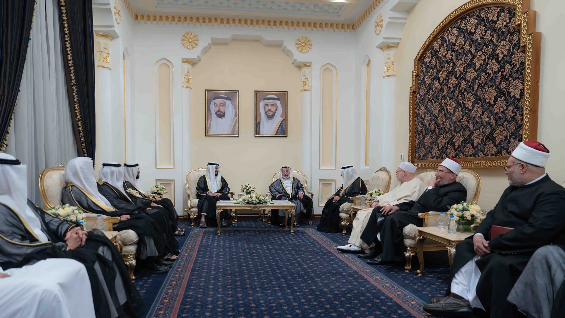 وتفضل صاحب السمو حاكم الشارقة بتكريم الرعاة والداعمين لمجمع القرآن الكريم في الشارقة، مقدماً سموه لهم الشهادات التقديرية والدروع، ملتقطاً سموه صورة تذكارية مع العلماء والمستكتبين في الموسوعتين.
