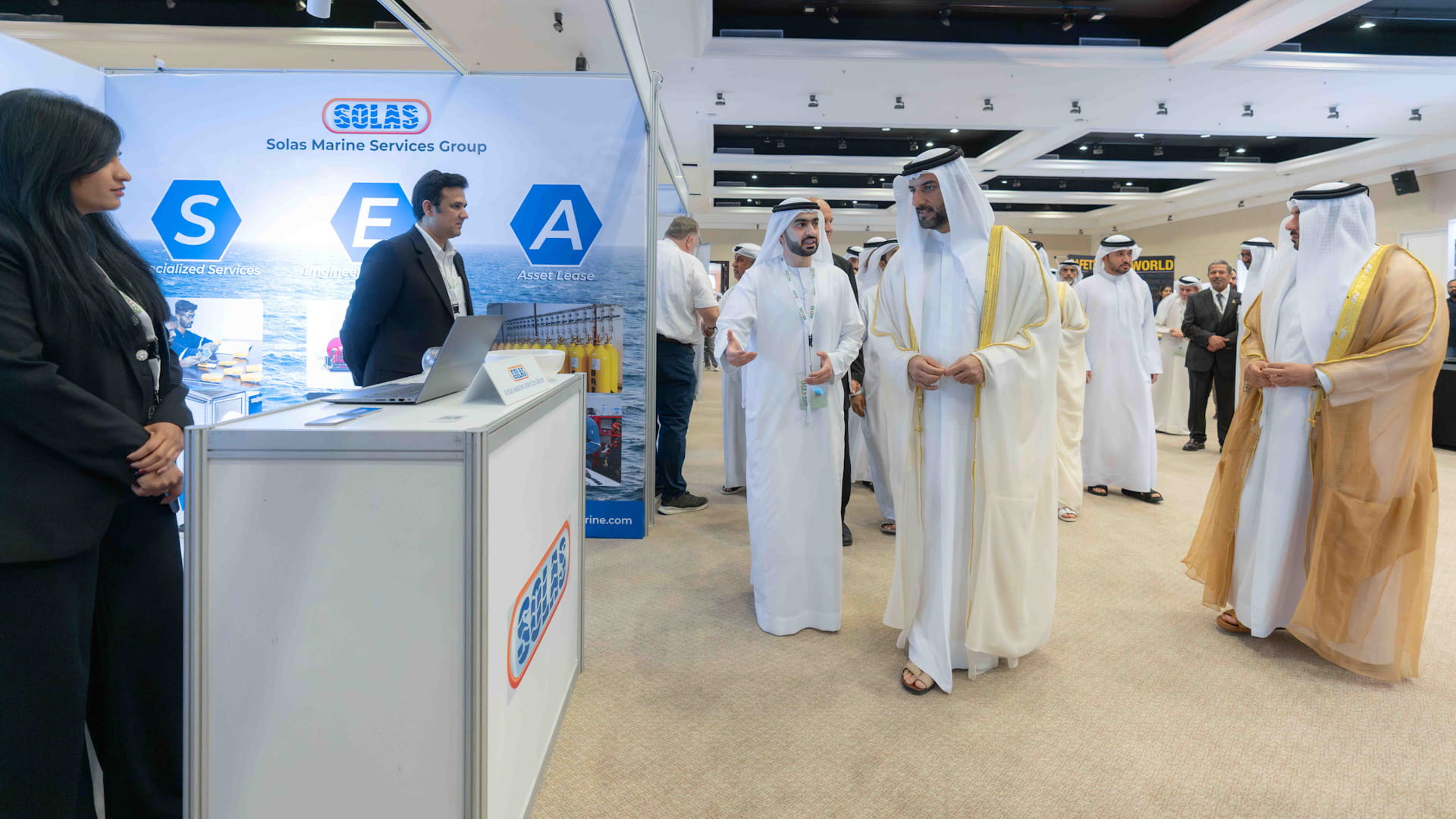 شهد انطلاق المعرض بجانب سمو رئيس مؤسسة نفط الشارقة الوطنية كل من: الشيخ خالد بن عبد الله القاسمي رئيس هيئة الشارقة للموانئ والجمارك والمناطق الحرة، والشيخ محمد بن أحمد القاسمي نائب رئيس دائرة النفط، وسعادة الشيخ سيف بن محمد القاسمي مدير هيئة الوقاية والسلامة، وسعادة هنا سيف السويدي رئيس هيئة البيئة والمحميات الطبيعية، وسعادة الدكتور عبدالعزيز بن بطي المهيري رئيس هيئة الشارقة الصحية، وسعادة سعيد بالجيو السويدي رئيس هيئة كهرباء ومياه وغاز الشارقة، وعدد من كبار المسؤولين وممثلي الجهات المشاركة في المعرض.