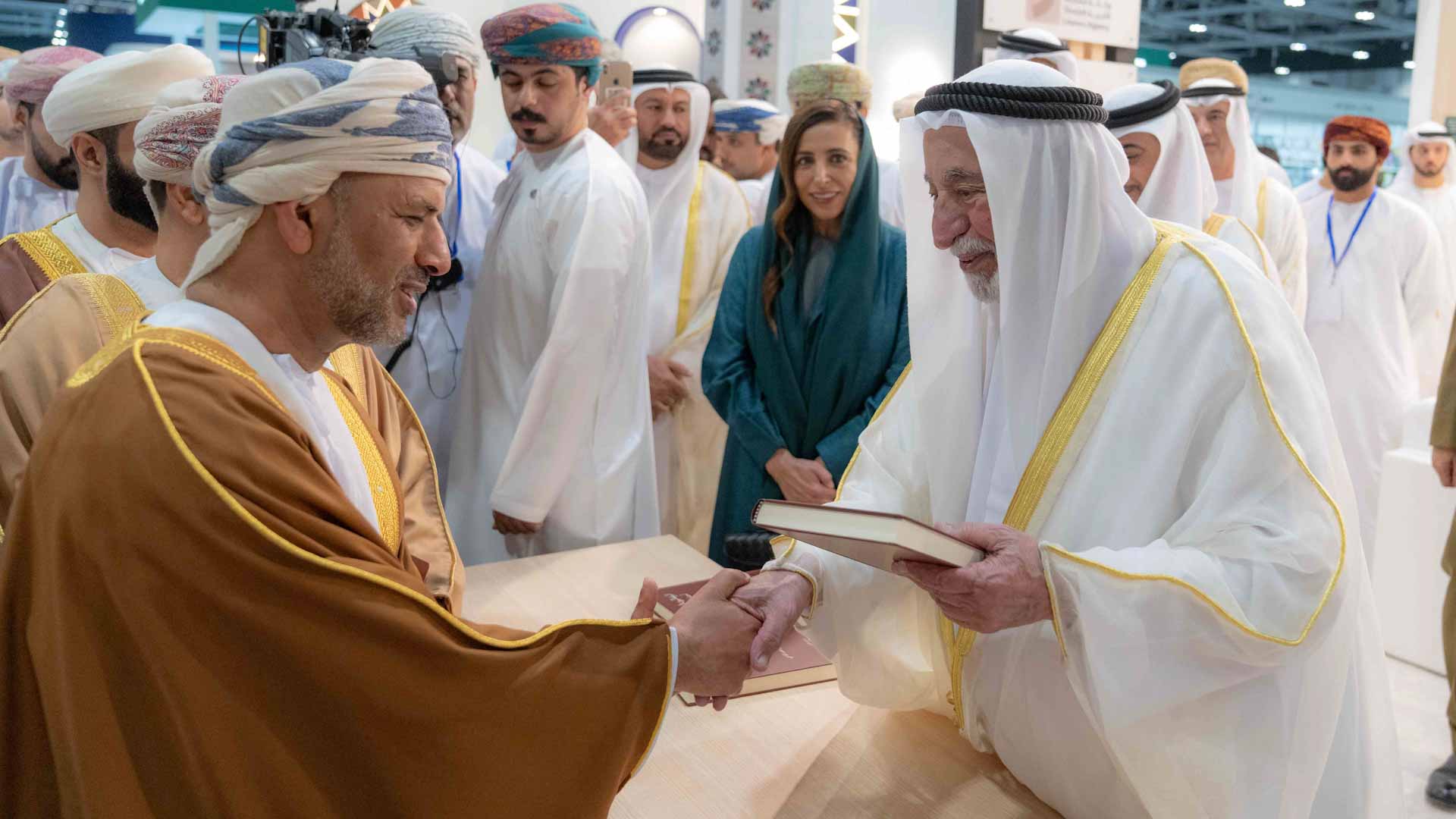 ورافق سموه خلال الزيارة كل من الشيخة بدور بنت سلطان القاسمي رئيسة مجلس إدارة هيئة الشارقة للكتاب، ومعالي خالد بن هلال البوسعيدي وزير ديوان البلاط السلطاني العماني، ومعالي محمد بن نخيرة الظاهري سفير الدولة لدى سلطنة عُمان الشقيقة، وسعادة عبد الله محمد العويس رئيس دائرة الثقافة، وسعادة أحمد بن ركاض العامري الرئيس التنفيذي لهيئة الشارقة للكتاب، وسعادة محمد عبيد الزعابي رئيس دائرة التشريفات والضيافة، وسعادة محمد حسن خلف مدير عام هيئة الشارقة للإذاعة والتلفزيون، وسعادة طارق سعيد علاي مدير عام المكتب الإعلامي لحكومة الشارقة، وعدداً من كبار المسؤولين.