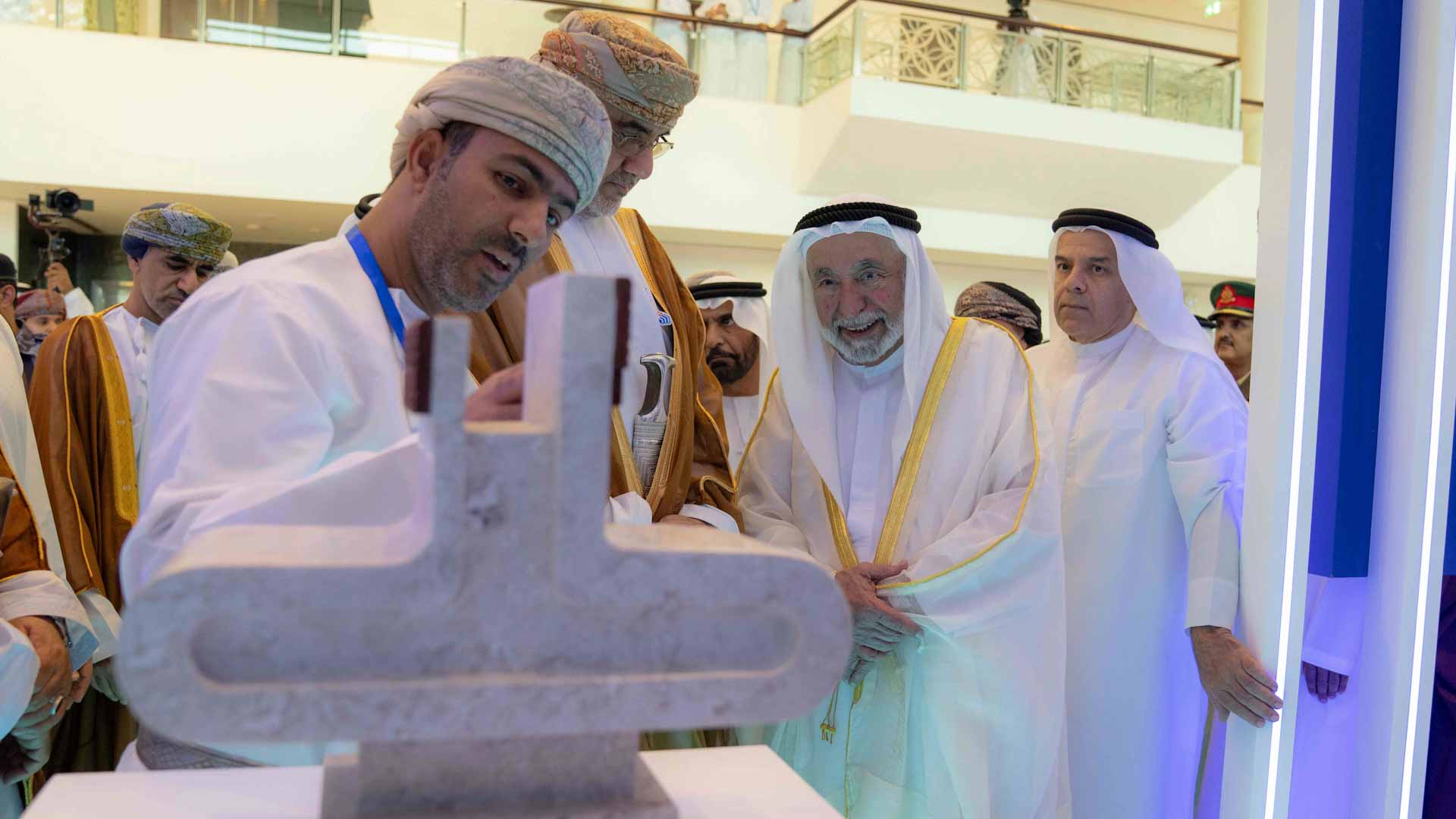 وتسلم سموه من محافظ شمال الشرقية منحوتة تذكارية بعنوان "عتبة الباب"، والمستوحاة من العمارة العُمانية، كما تقبل سموه عدداً من الهدايا التذكارية والإصدارات والإهداءات من الجهات المشاركة في المعرض، تقديراً وتثميناً لزيارة سموه المعرض والجناح.