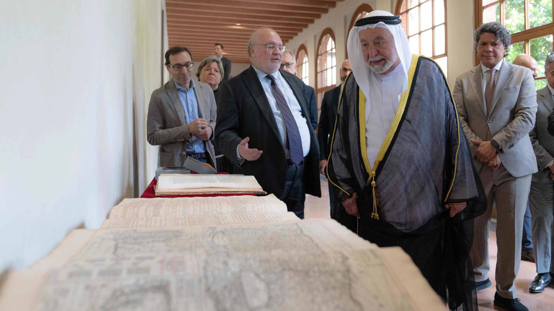 وتفضل صاحب السمو حاكم الشارقة بالتوقيع على كتاب "مرسوم بابوي للبابا أوربان الثامن، بابا الكنيسة الكاثوليكية المؤرخ بتاريخ 14 أغسطس 1624م" باللغتين العربية والإنجليزية، وخط سموه في الكتاب المُهدى للجامعة كلمات جاء فيها "أهديكم هذا الكتاب الذي وثقت فيه، بالتقصي والبحث والعدالة، كثيراً من التفاصيل والحقائق عن مرحلةٍ مهمة من تاريخنا وتاريخكم. جمعت قصاصات حقيقته من العالم، ووثقتها في الشارقة، وأتركها لكم وللمستقبل". ويُعتبر الإهداء مساهمة معرفية تعكس التزام الشارقة بتوثيق التاريخ وتعزيز التواصل الثقافي مع المؤسسات العلمية العالمية.