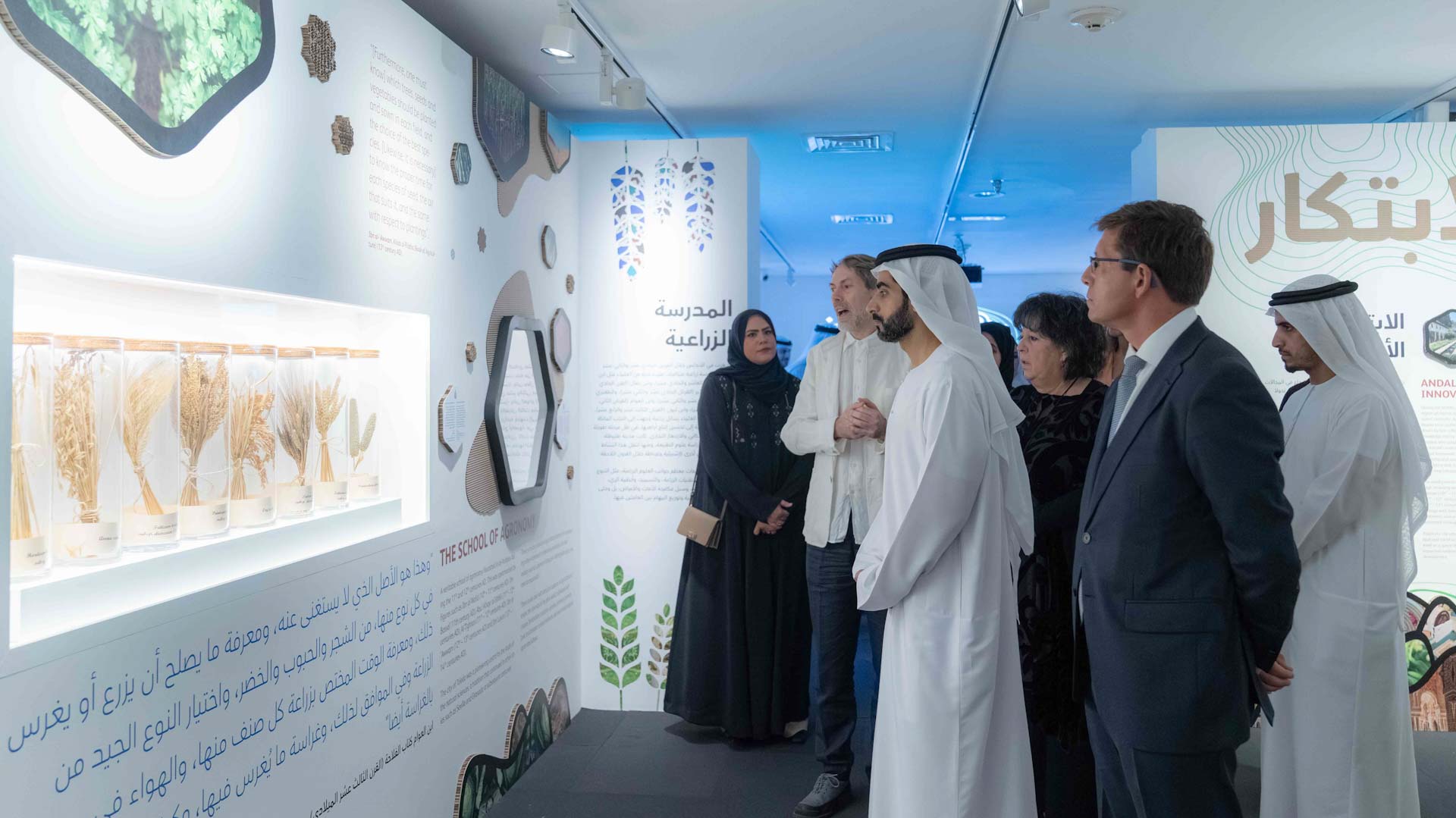 وتعرف رئيس مكتب سمو الحاكم على المعرض الذي يضم أكثر من 60 قطعة فنية وتاريخية، من بينها مجموعة من المقتنيات التي تُعرض للمرة الأولى في إمارة الشارقة، تُبرز الإرث الزراعي والحضاري للأندلس في مشهدٍ حي يمزج بين جماليات الطبيعة وعمق التجربة الإنسانية، مطلعاً على ما يحويه المعرض من نافذة ثقافية ومعرفية تُثري الزائر وتفتح أمامه آفاقاً جديدة لاكتشاف أثر الأندلس في ذاكرة الحضارة.