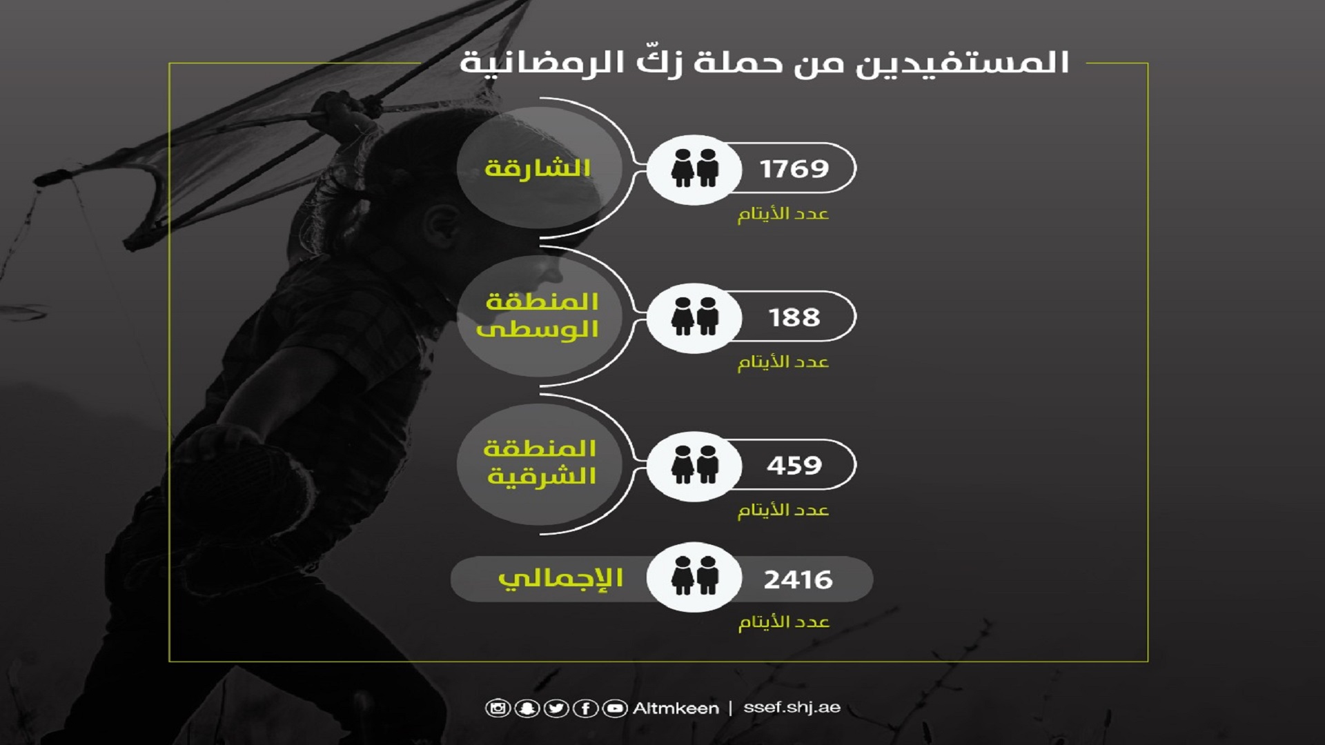 للعام الثالث على التوالي، أعلنت مؤسسة الشارقة للتمكين الاجتماعي عن إطلاق حملة "زكِّ" الرمضانية، مستهدفةً 2416 يتيماً من المنتسبين إلى أسر في الشارقة والمنطقة الوسطى والمنطقة الشرقية، بموزانة سنوية لمشروع زكاة المال قدّر بـ 12 مليون درهم.